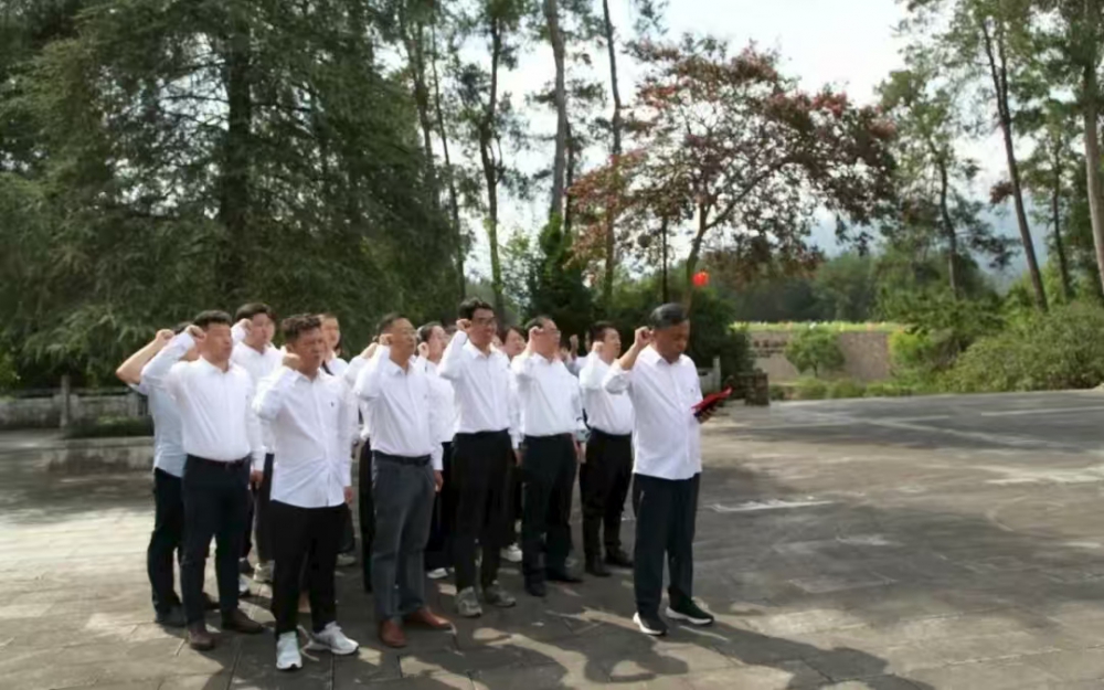 参观前,全体党员肃立于何挺颖烈士纪念广场,向英烈庄严敬礼,表达对英烈的深切追思和对英烈精神的传承之志。白新建带领全体党员在广场前重温入党誓词,在铿锵的誓言中,大家回顾初心,更坚定了为共产主义事业奋斗终身的决心。